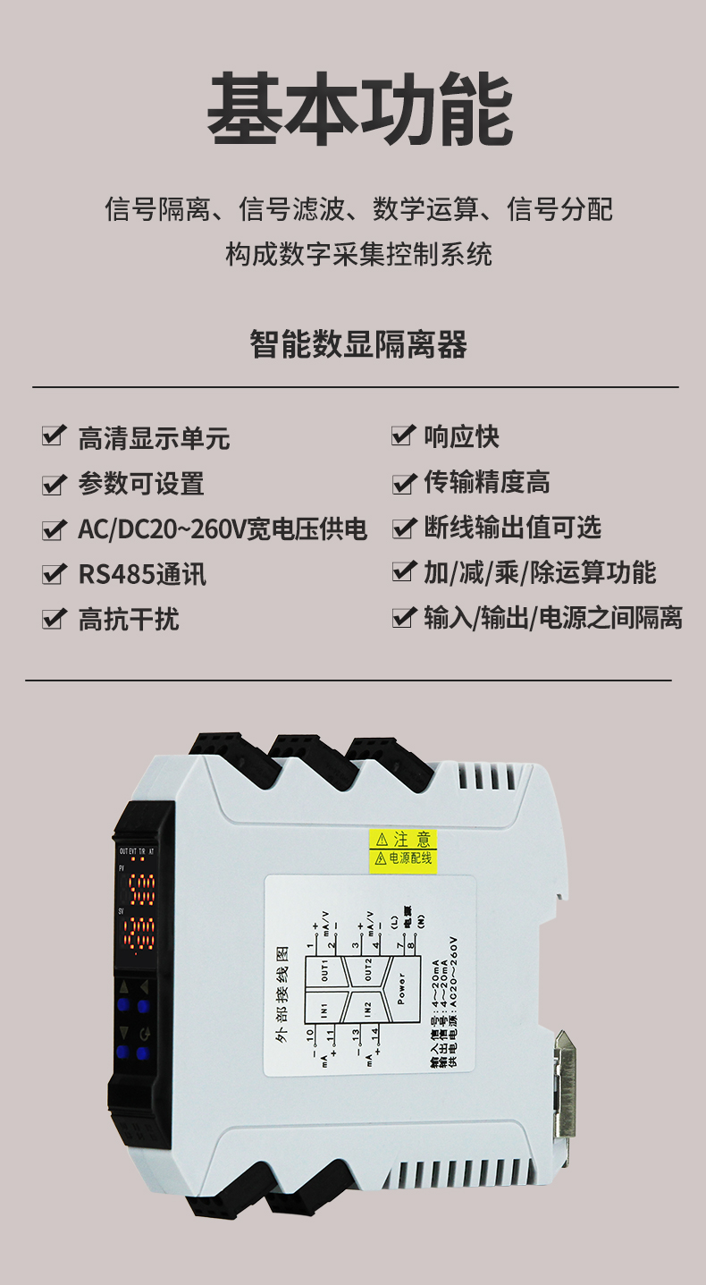 虹潤公司是專業(yè)生產(chǎn)隔離器的國家專精特新“小巨人”企業(yè)。生產(chǎn)的導(dǎo)軌式智能隔離器 ,具有高清顯示單元,參數(shù)可設(shè)置,寬電源供電,響應(yīng)快,帶RS485通訊等特點。產(chǎn)品獲得信號隔離器、一種二端子模塊、無源信號隔離器等3項國家發(fā)明專利,主持起草現(xiàn)場設(shè)備工具(FDT)接口規(guī)范、工業(yè)過程測量和控制系統(tǒng)用隔離式安全柵、工業(yè)過程測量和控制系統(tǒng)用配電器等3項國家標(biāo)準(zhǔn),以及通信系統(tǒng)多通道數(shù)據(jù)采集控制終端規(guī)范軍用標(biāo)準(zhǔn),參與國際5G標(biāo)準(zhǔn)制定,取得智能隔離器等2項相關(guān)軟件著作權(quán)。產(chǎn)品廣泛應(yīng)用于電力、石化,冶金、制藥、水處理、機(jī)械配套等各種工業(yè)現(xiàn)場。