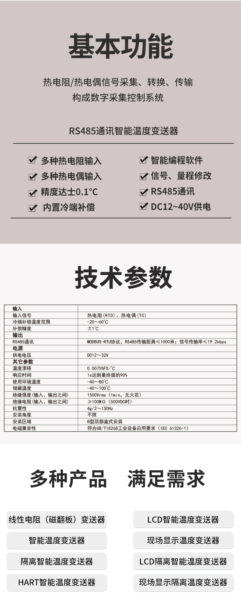 虹潤(rùn)公司是專業(yè)生產(chǎn)溫度變送器的國(guó)家專精特新“小巨人”企業(yè)。生產(chǎn)的智能溫度變送器,具有適配各類溫度傳感器,精度高,通過(guò)編程線修改輸入信號(hào)類型及量程,高抗干擾,HART或485通訊等特點(diǎn)。該產(chǎn)品不僅通過(guò)HART基金會(huì)認(rèn)證、德國(guó)萊茵 CE 認(rèn)證與 SIL 功能安全認(rèn)證,還獲得具備減震抗干擾能力的溫度變送器、信號(hào)隔離器、一種二端子模塊、無(wú)源信號(hào)隔離器等4項(xiàng)國(guó)家發(fā)明專利,主持起草物聯(lián)網(wǎng)智能溫度儀表、現(xiàn)場(chǎng)設(shè)備工具(FDT)接口規(guī)范、工業(yè)過(guò)程測(cè)量和控制系統(tǒng)用溫度變送器等3項(xiàng)國(guó)家標(biāo)準(zhǔn),以及通信系統(tǒng)多通道數(shù)據(jù)采集控制終端規(guī)范軍用標(biāo)準(zhǔn),參與國(guó)際5G標(biāo)準(zhǔn)制定,取得HART溫度變送器、智能溫度變送器等3項(xiàng)相關(guān)軟件著作權(quán)。產(chǎn)品廣泛應(yīng)用于石油、化工、電力、冶金、制藥、食品、水處理等各種工業(yè)領(lǐng)域。