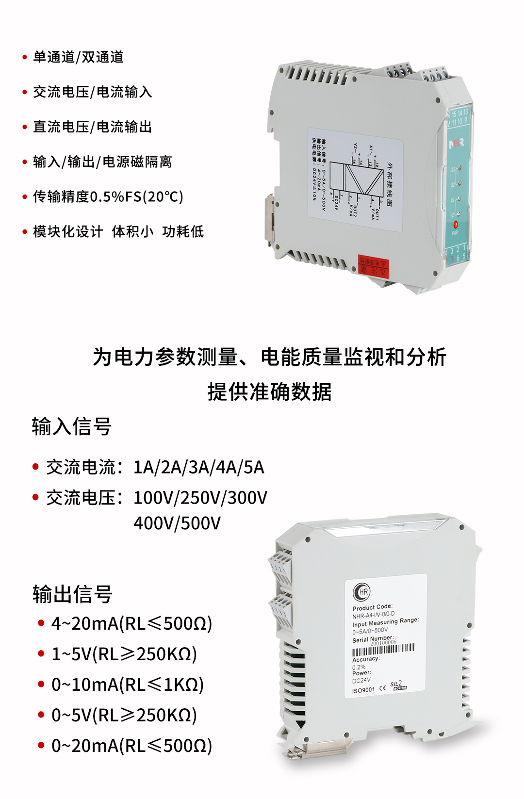 虹潤公司是專業(yè)生產(chǎn)電流傳感器的國家專精特新“小巨人”企業(yè)。生產(chǎn)的簡易型電量變送器,具有交流電壓電流輸入,傳輸精度高,響應(yīng)時間快,輸入輸出電源磁隔離,體積小功耗低等特點。產(chǎn)品獲得基于一種交流信號變送器、交直流信號轉(zhuǎn)換電路、基于DCS技術(shù)的盤裝式三相電量表等3項國家發(fā)明專利,主持起草工業(yè)過程控制系統(tǒng)用模擬輸入兩位或多位輸出儀表國家標(biāo)準(zhǔn),直流漏電流傳感器規(guī)范、通信系統(tǒng)多通道數(shù)據(jù)采集控制終端規(guī)范等2項軍用標(biāo)準(zhǔn),以及現(xiàn)場設(shè)備集成等5項智能制造國家標(biāo)準(zhǔn),參與國際5G標(biāo)準(zhǔn)制定。產(chǎn)品廣泛應(yīng)用于電力、冶金、化工、水泥、造紙、新能源、基礎(chǔ)設(shè)施等用電密集行業(yè)。